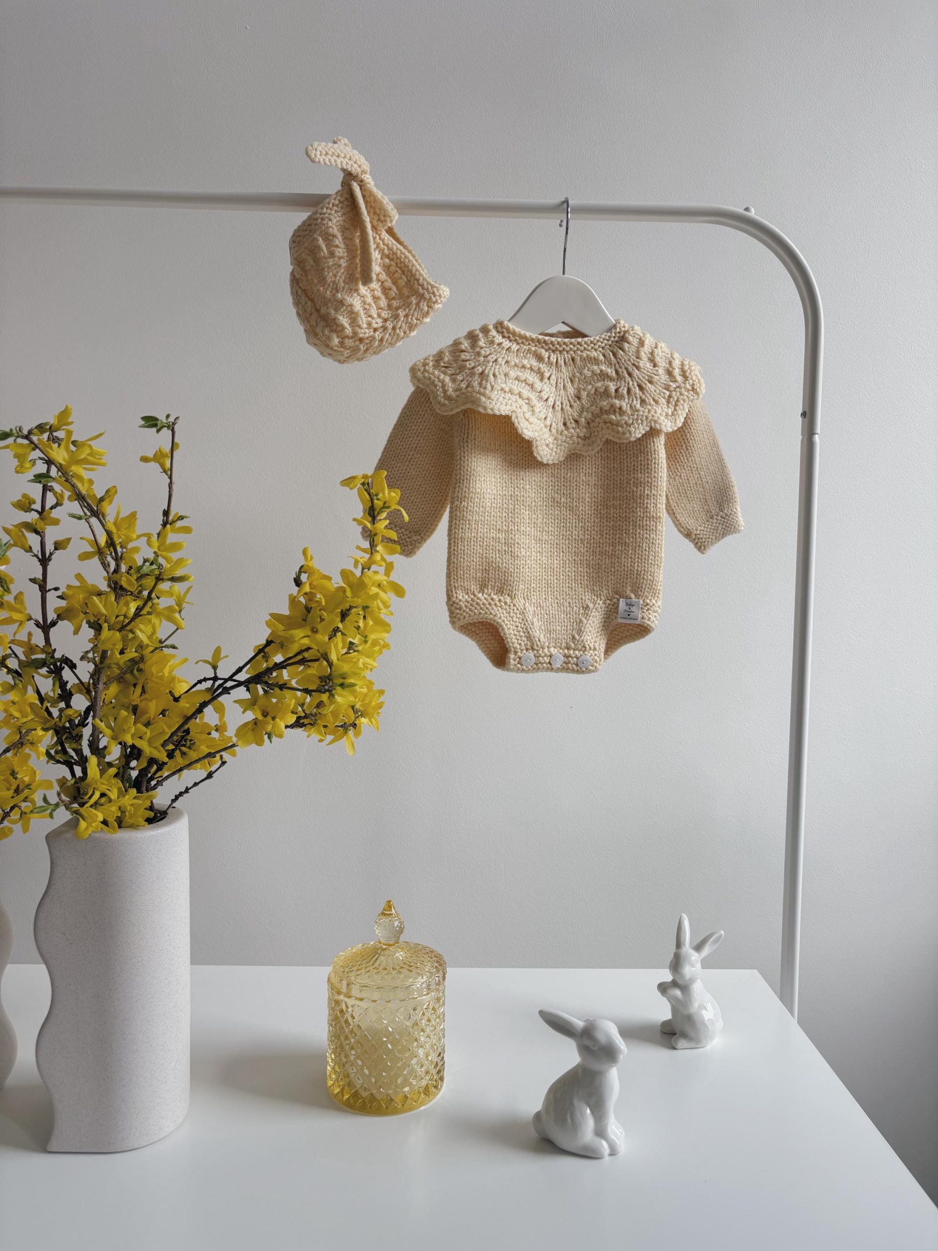 Merino Wool Baby Sweater and Bonnet Set – Cream Ruffle Neck