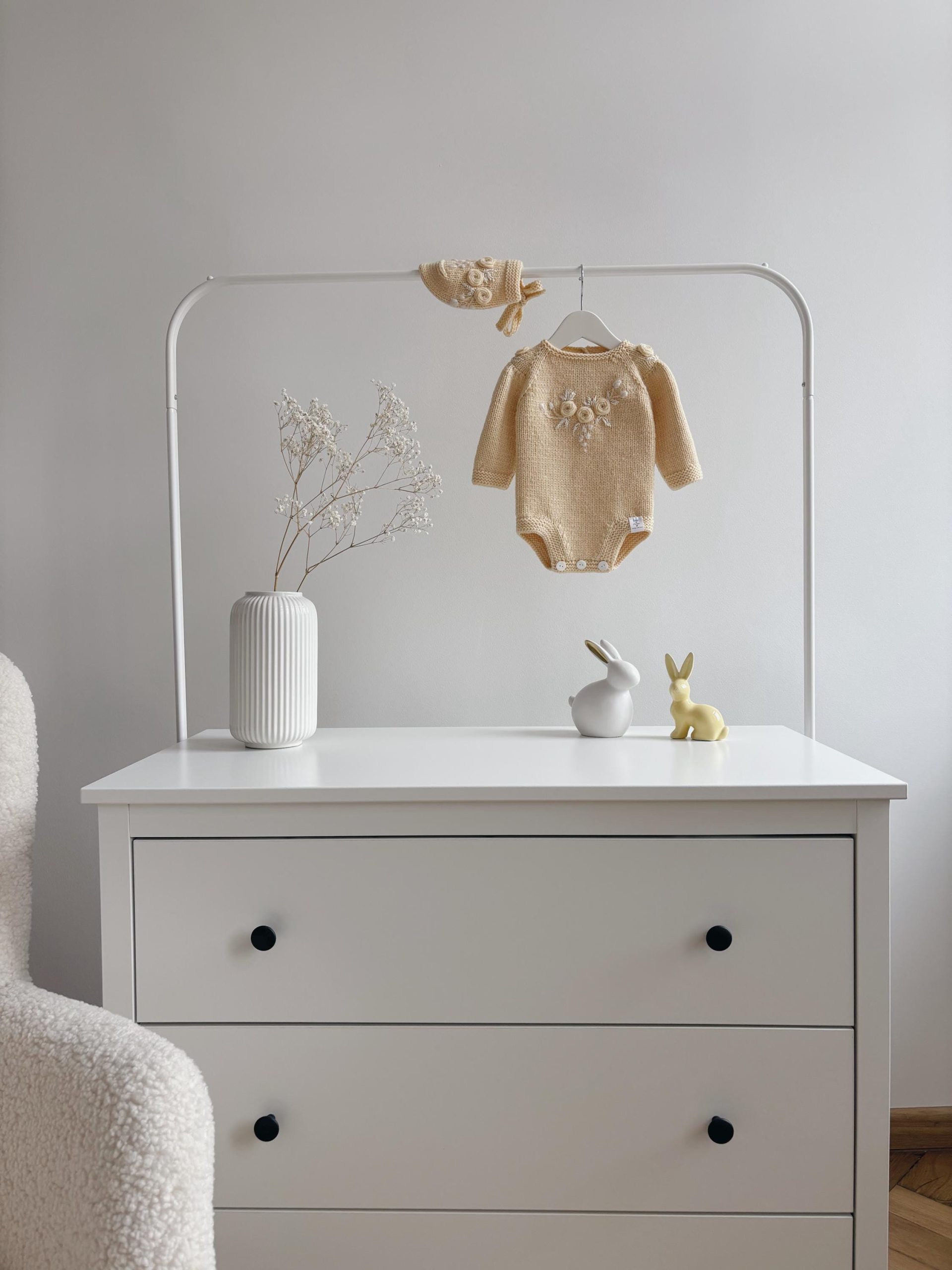 Alpaca Bunny Baby Set – Cream Romper and Bonnet