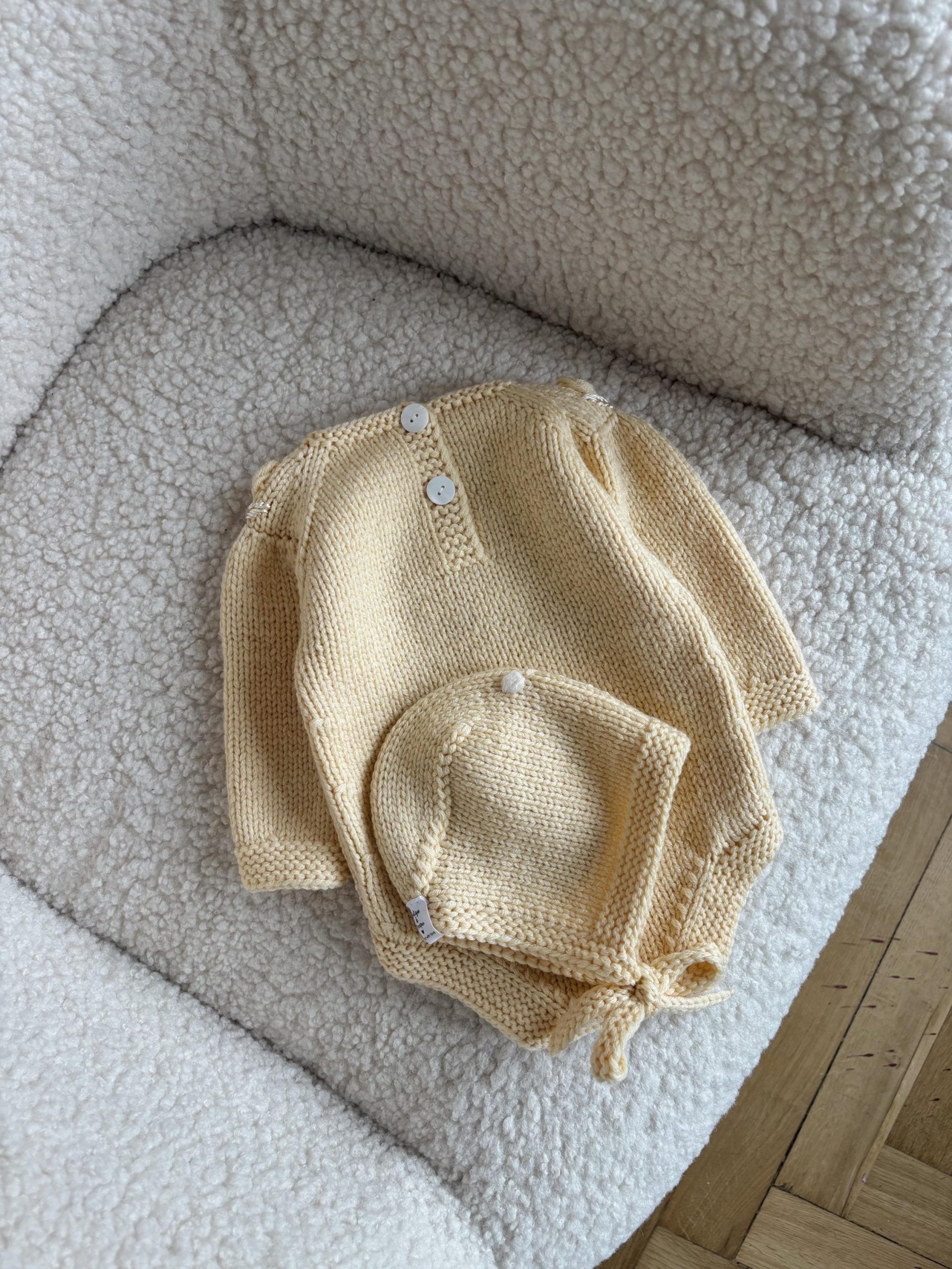 Hand-Knitted Merino Wool Baby Romper and Bonnet Set