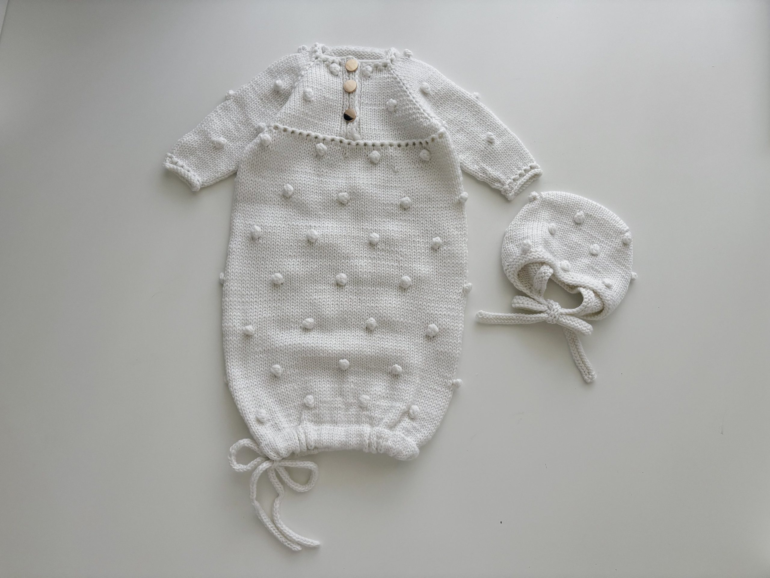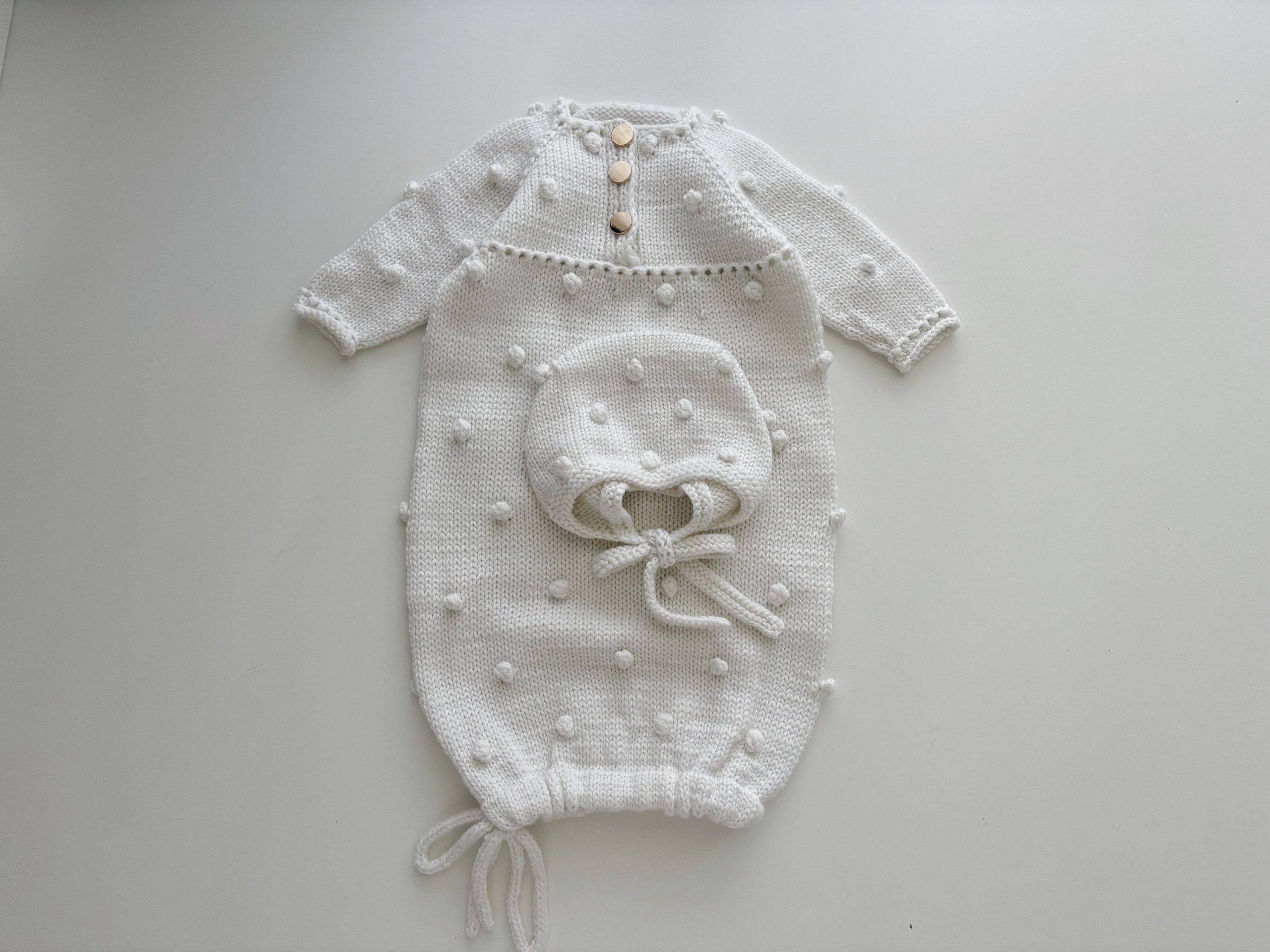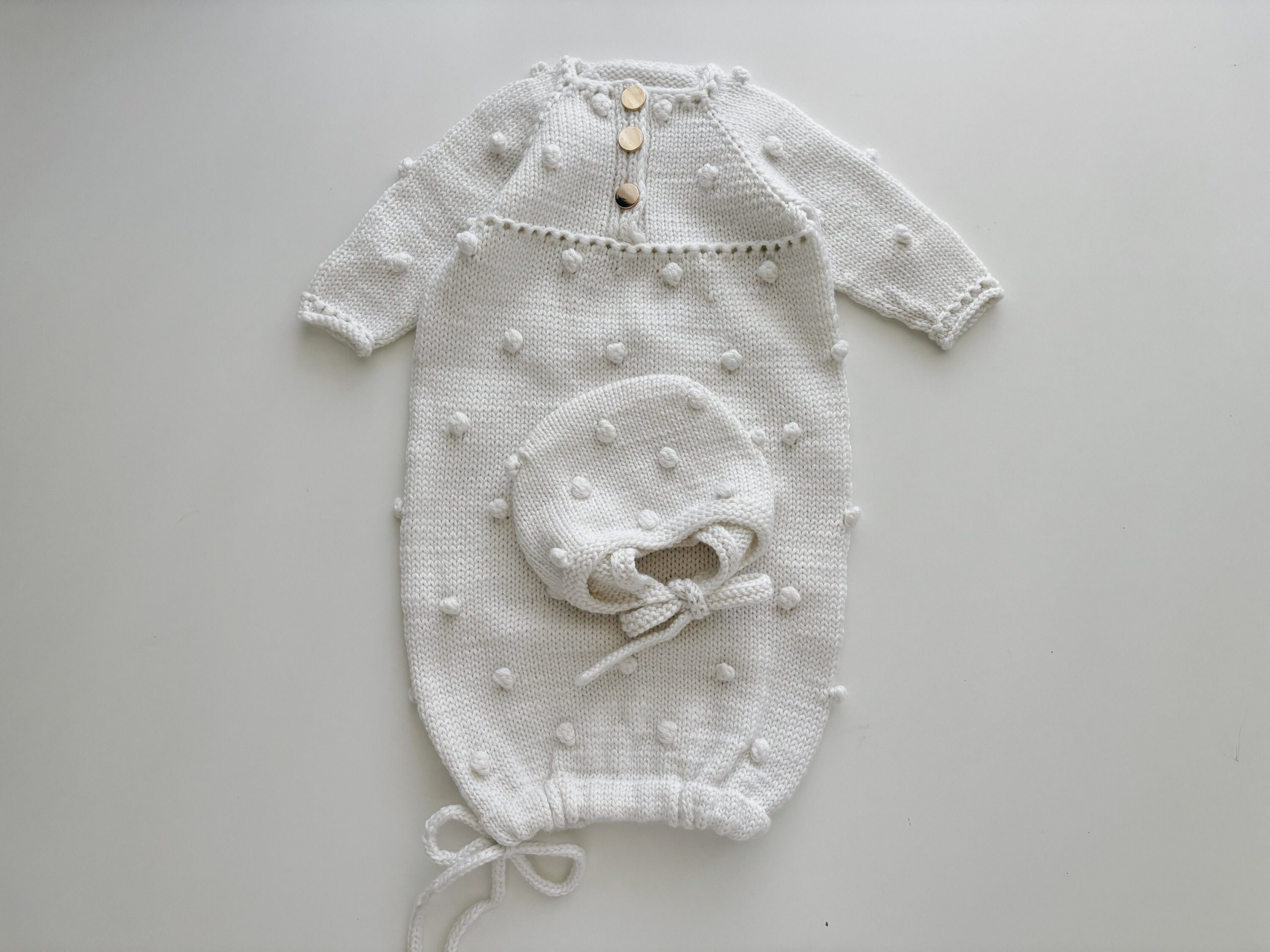Cotton Popcorn Knit Baby Outfit – Romper & Bonnet Set