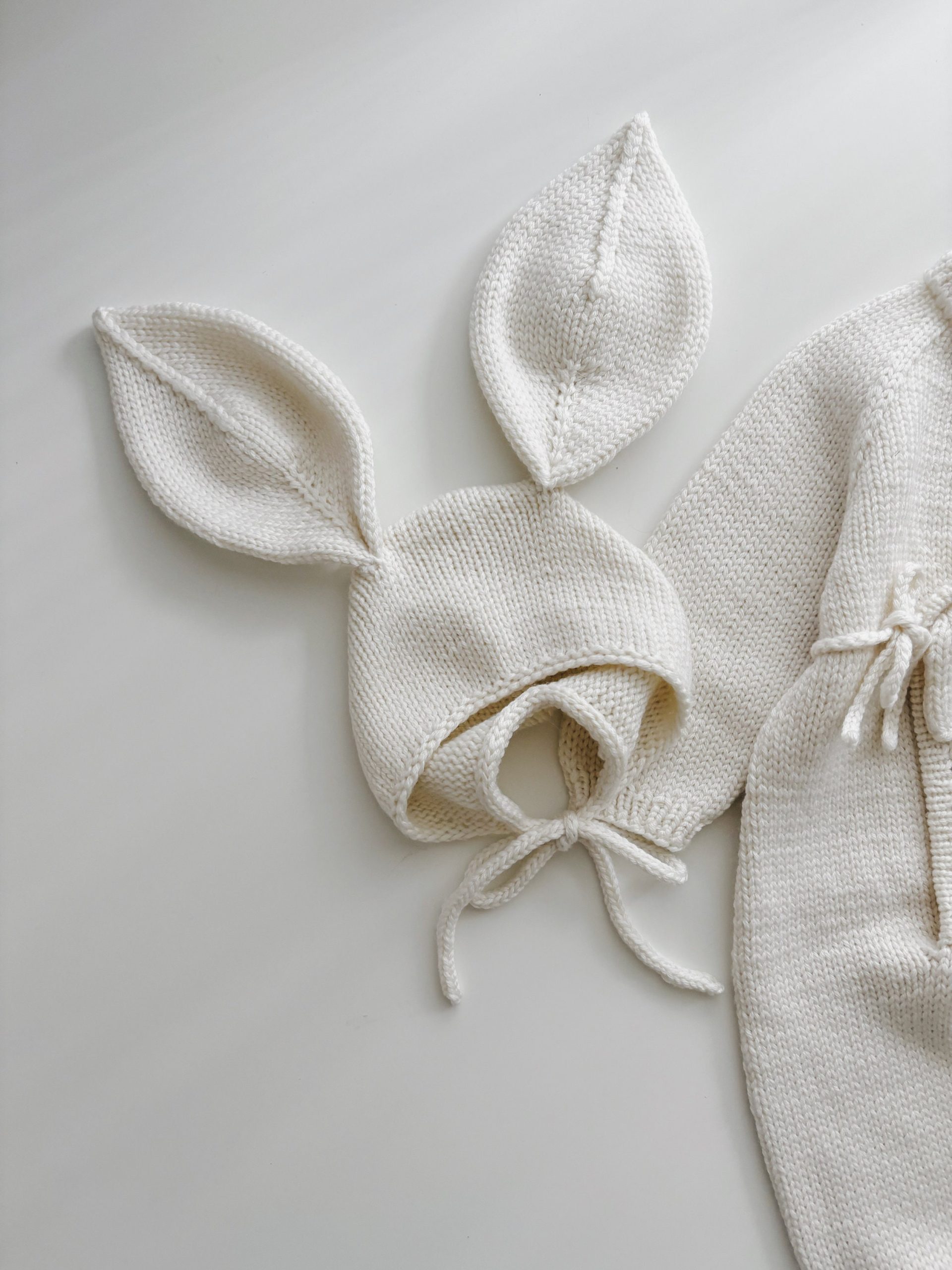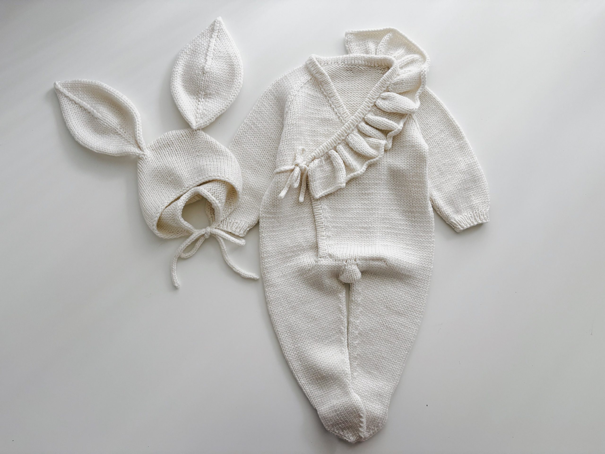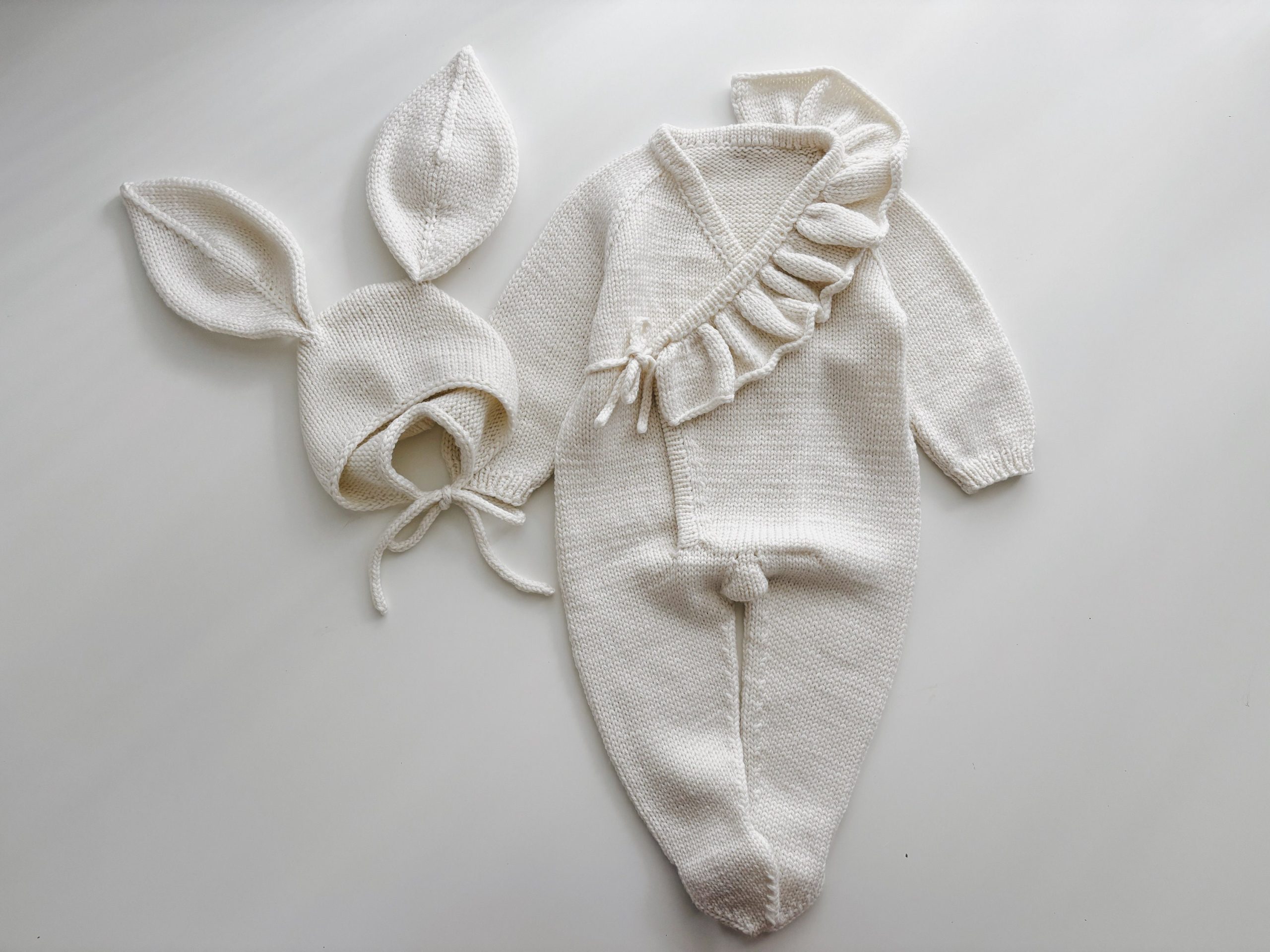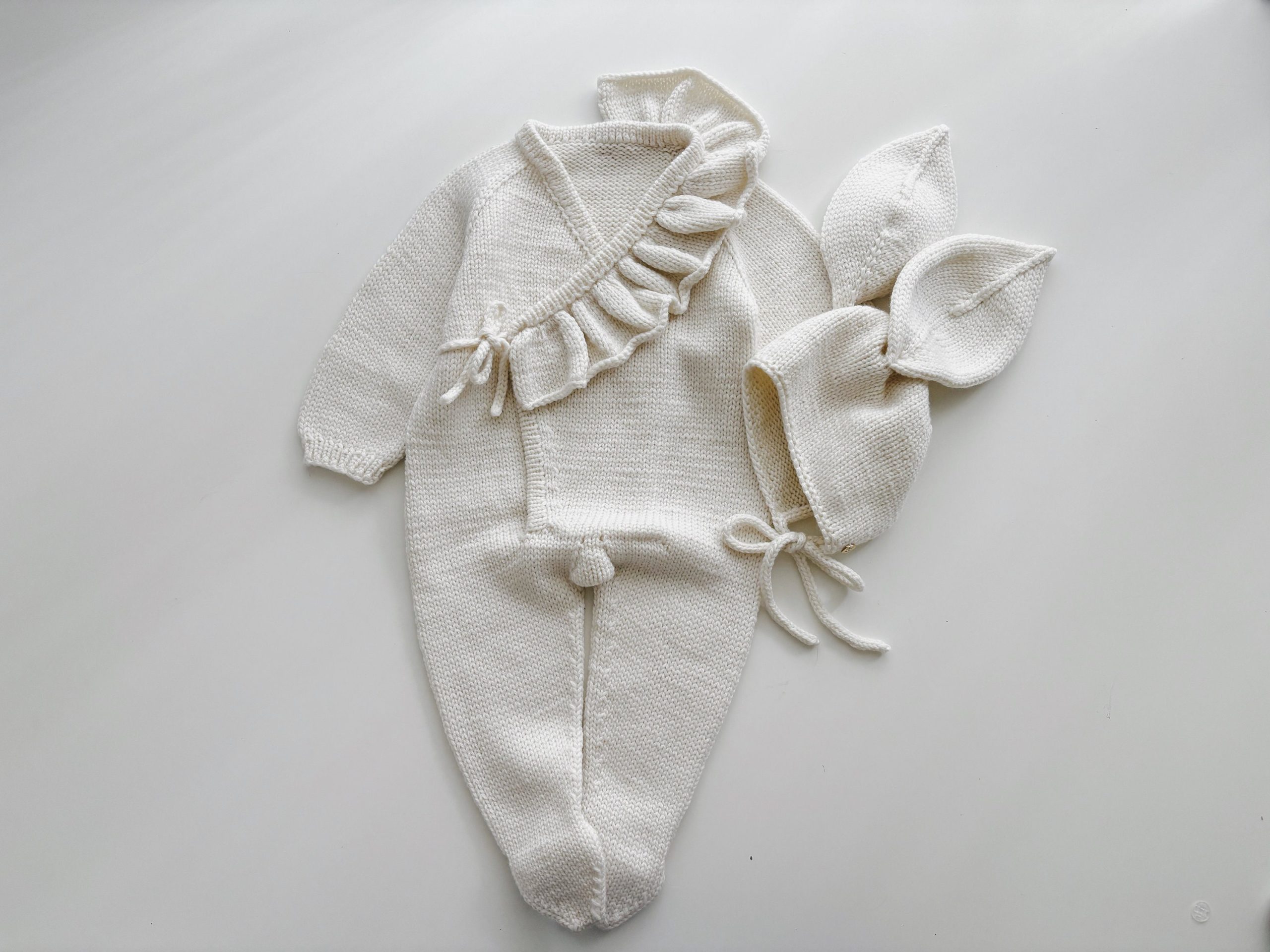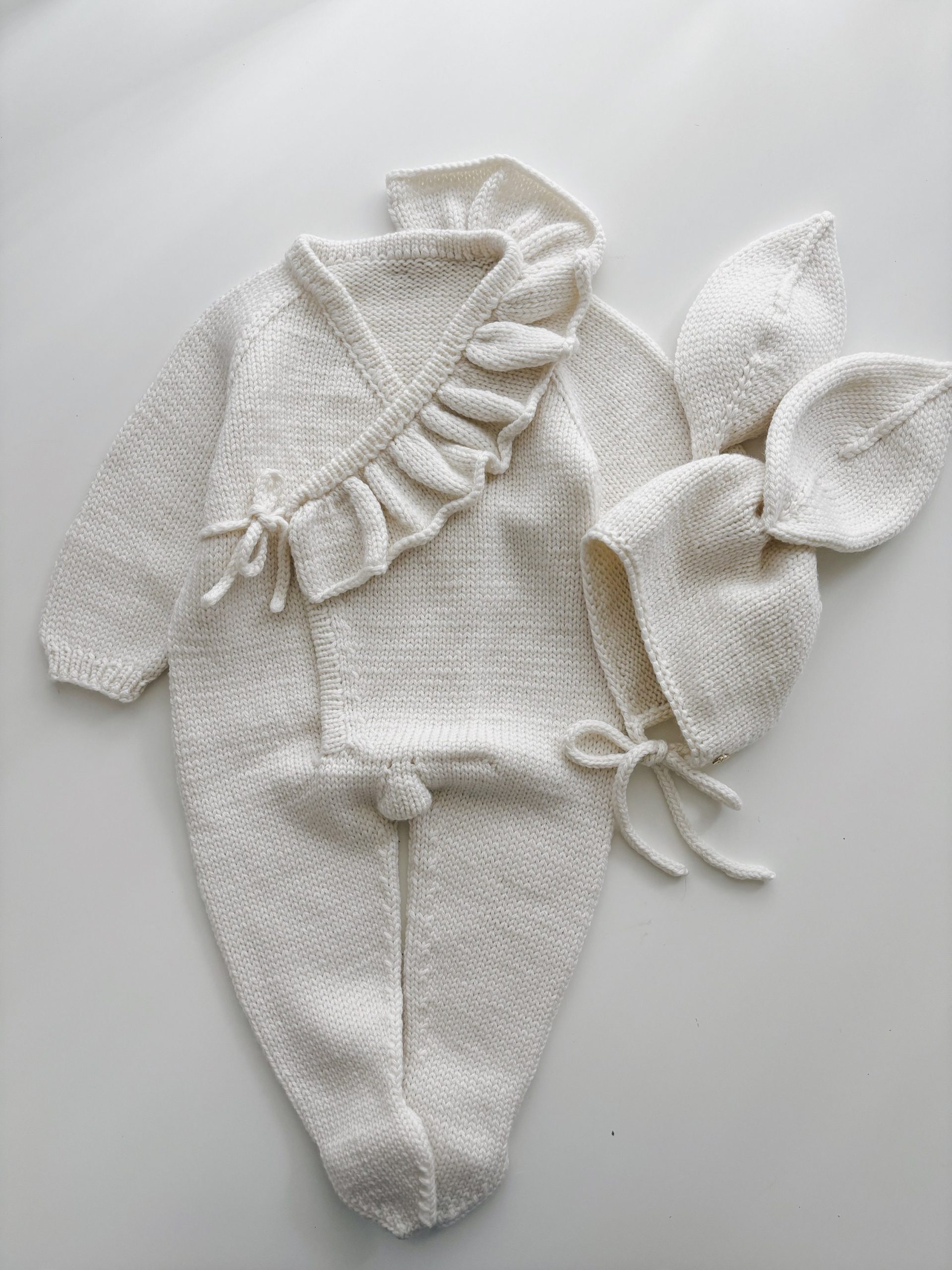 Merino Baby Romper and Bunny Bonnet Set – Knit Outfit (3-6 Months)