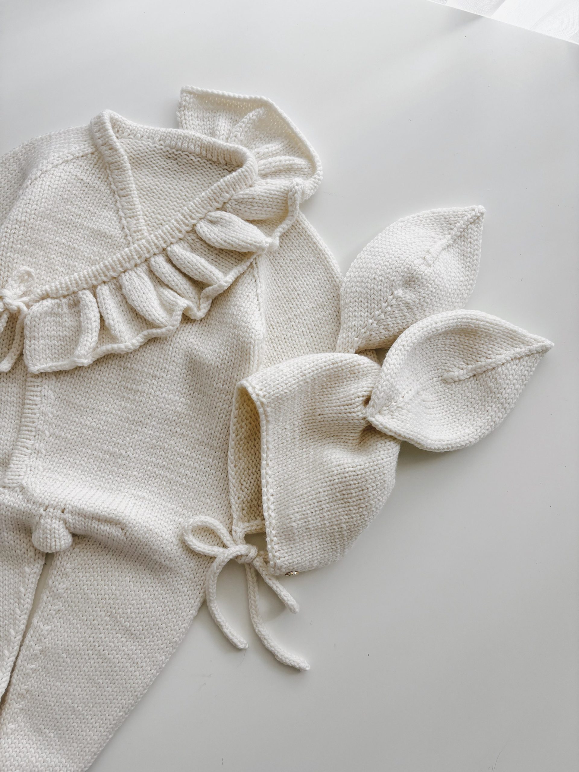 Cotton Knit Baby Romper Set – Cream Bonnet