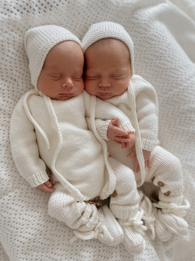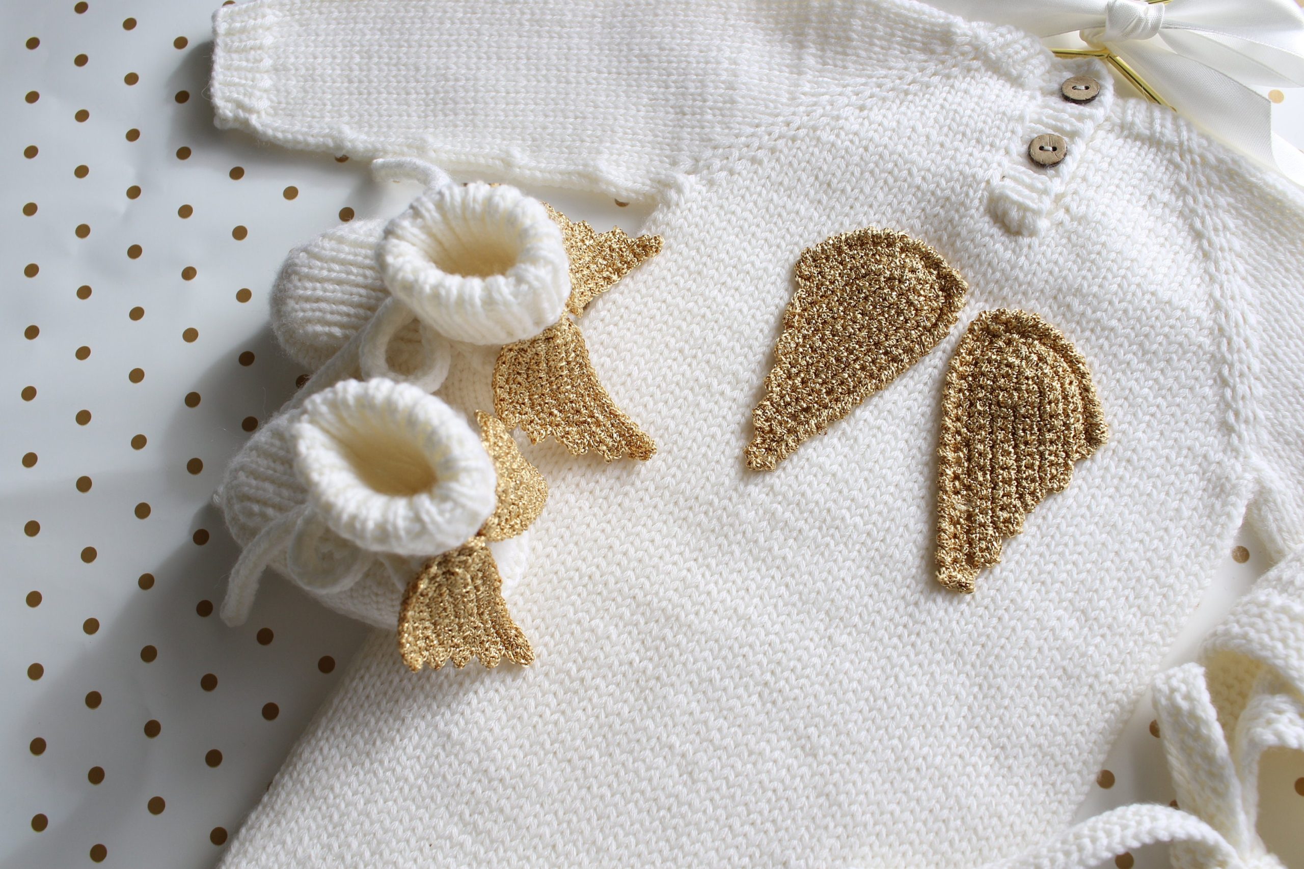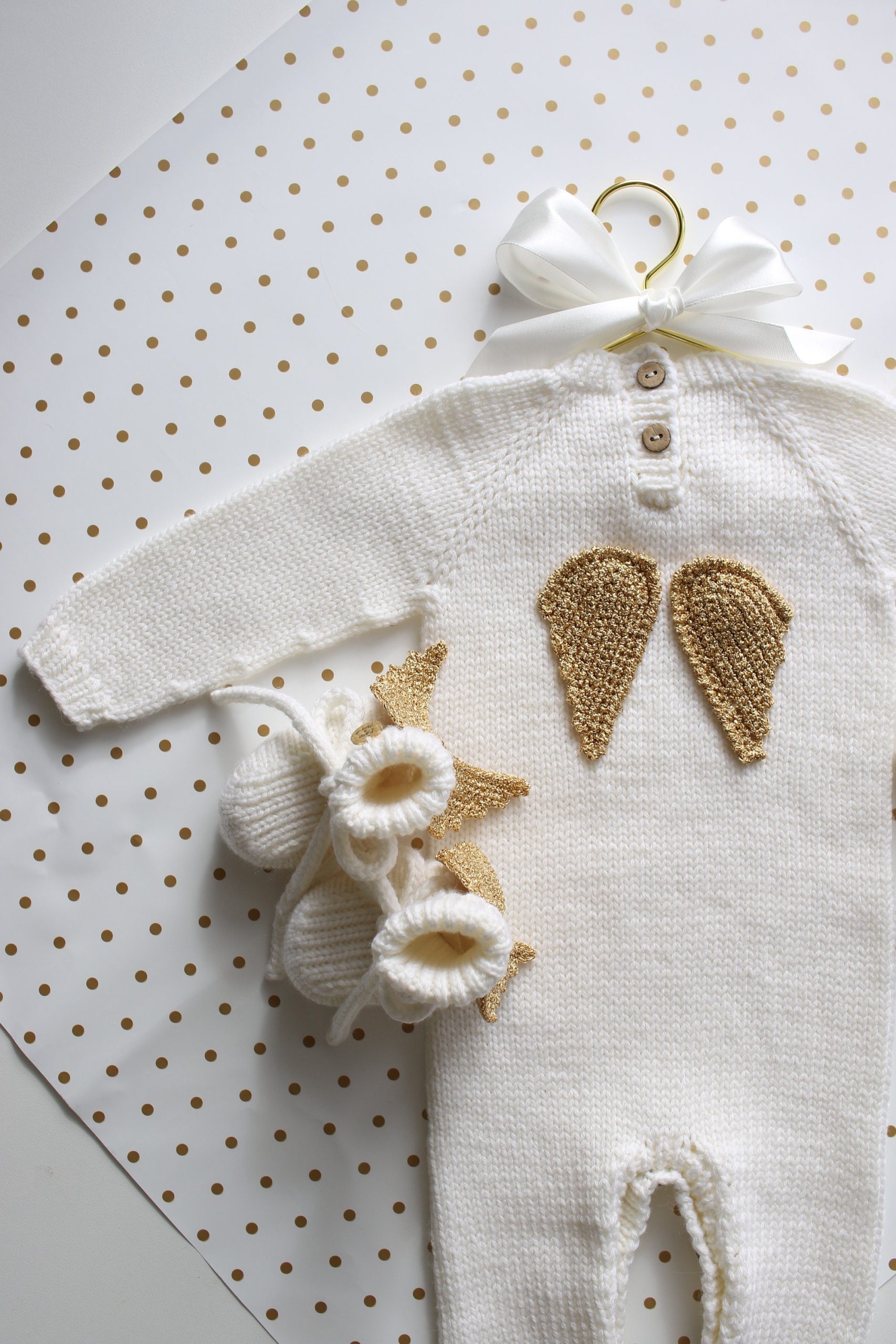 Merino Knit Baby Angel Outfit – Romper, Bonnet & Booties