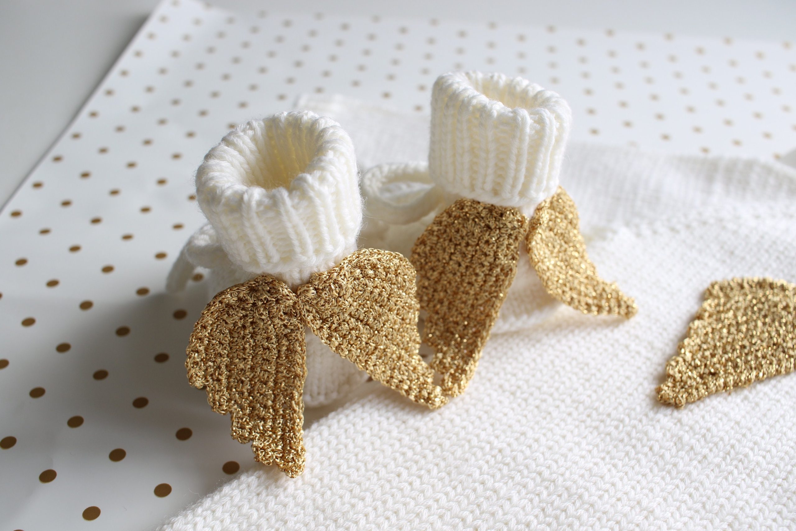 Angora Baby Booties – Newborn Girl Angel Wing Shoes (3-6 Months)