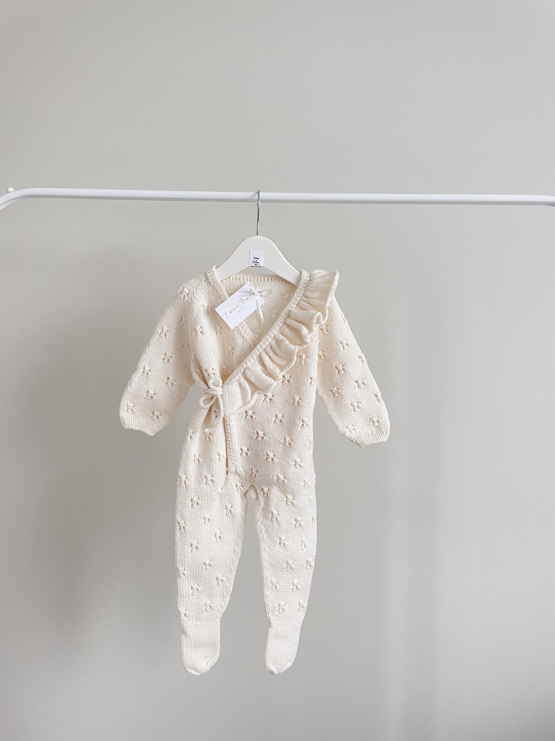 Embroidered Merino Baby Romper and Bonnet Set – Knitted Photo Prop