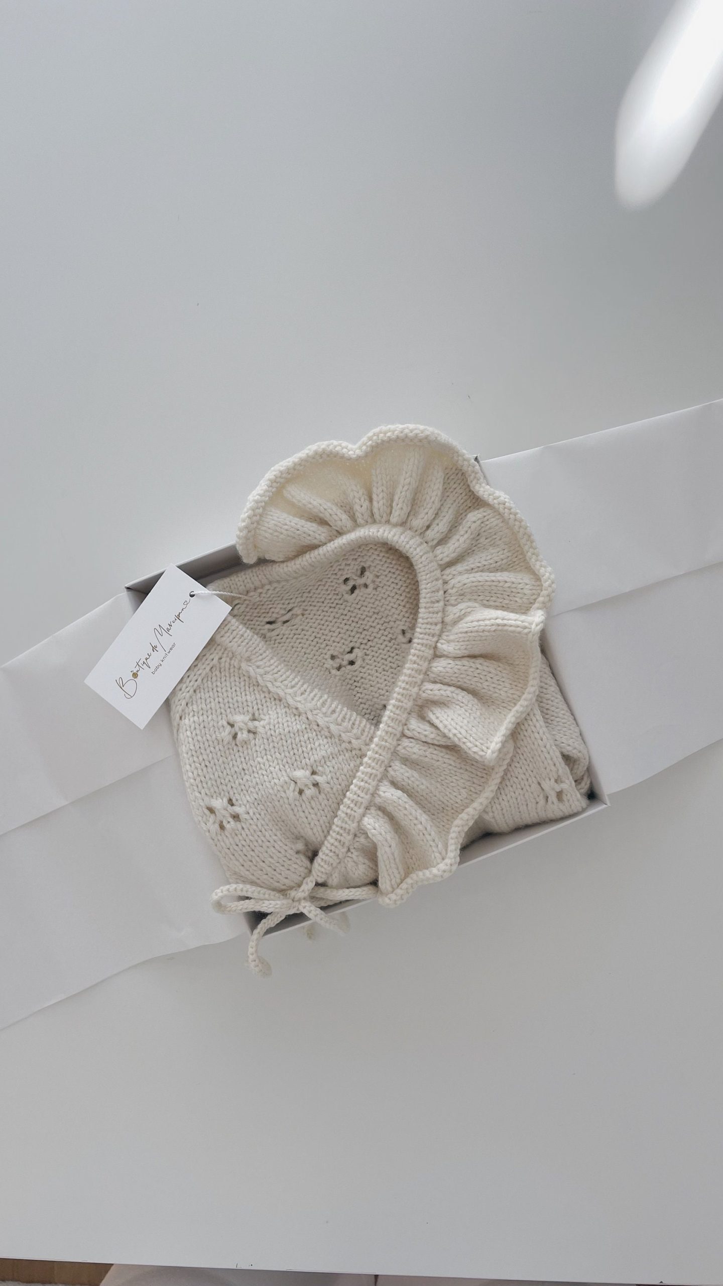 Merino Wool Baby Sweater and Bonnet Set – Cream Ruffle Neck
