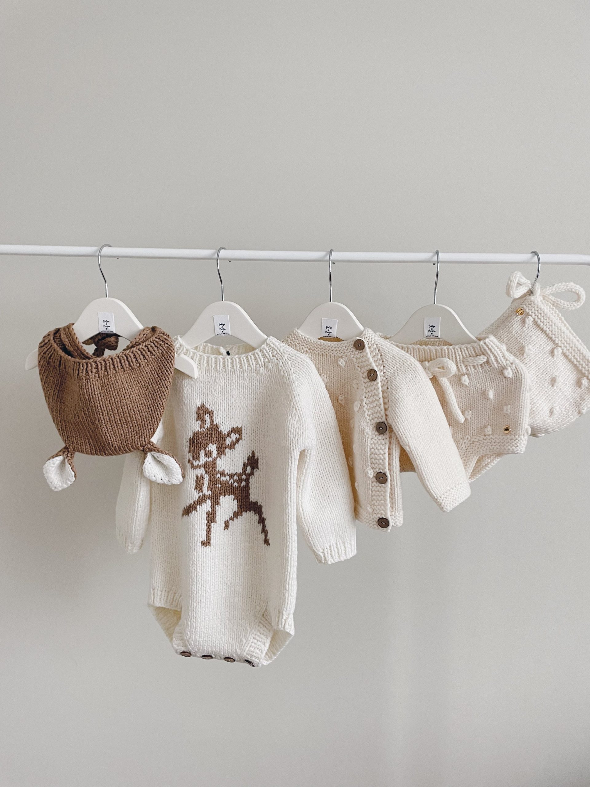 Merino Wool Deer Romper and Bonnet Set – Baby Outfit