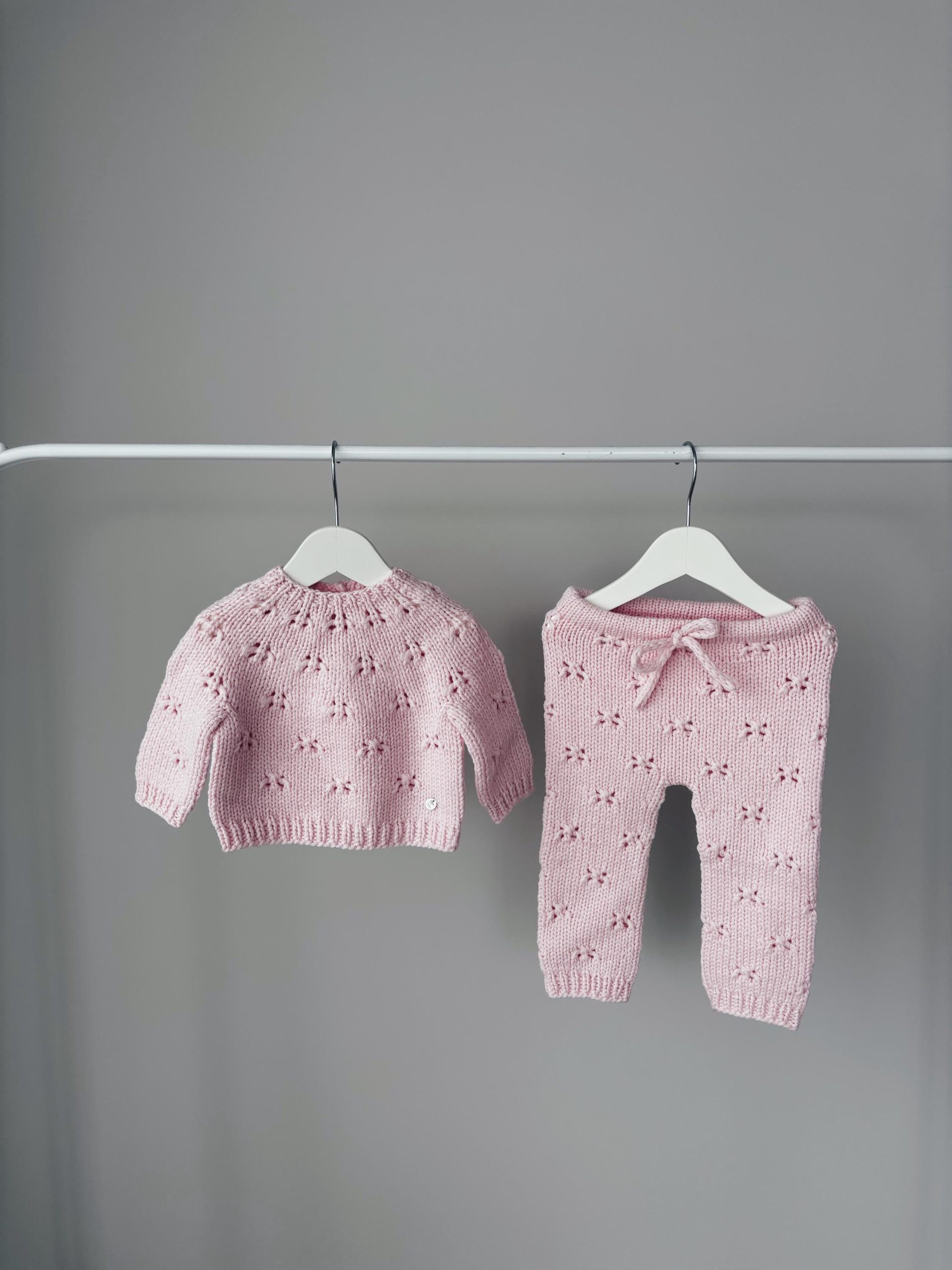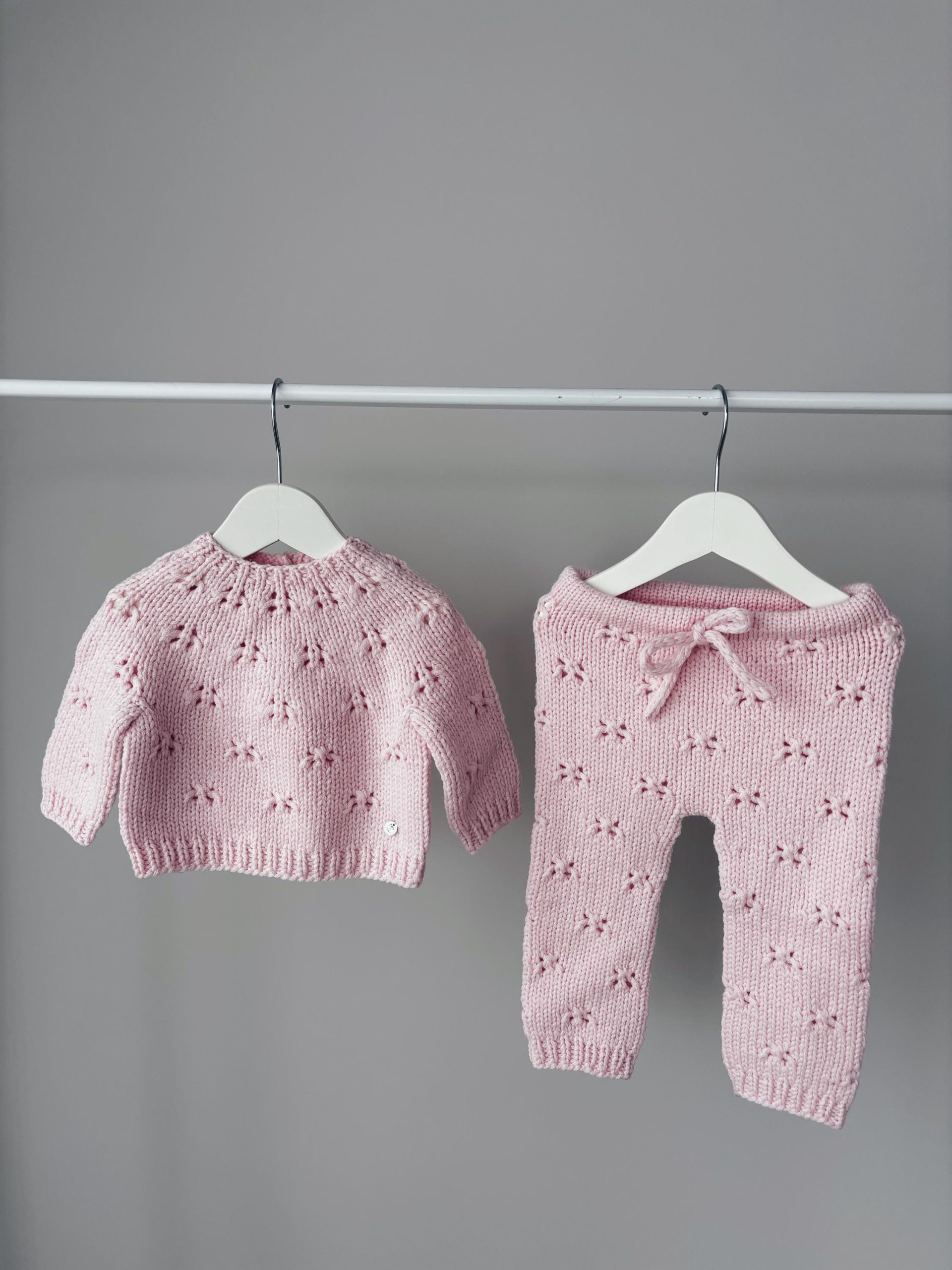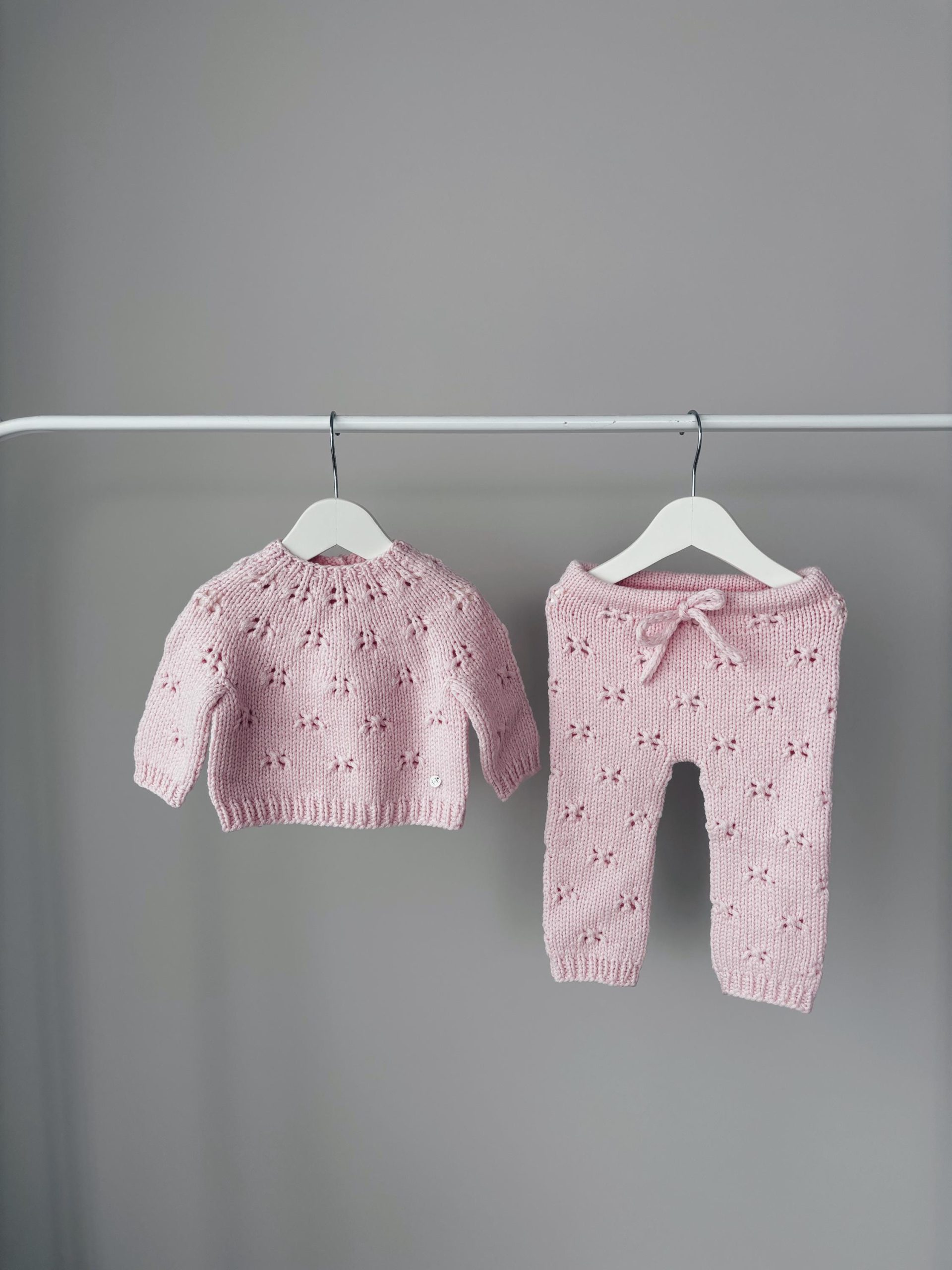 I have knitted this baby girl set from the wonderfully pale pink 100% merino wool.